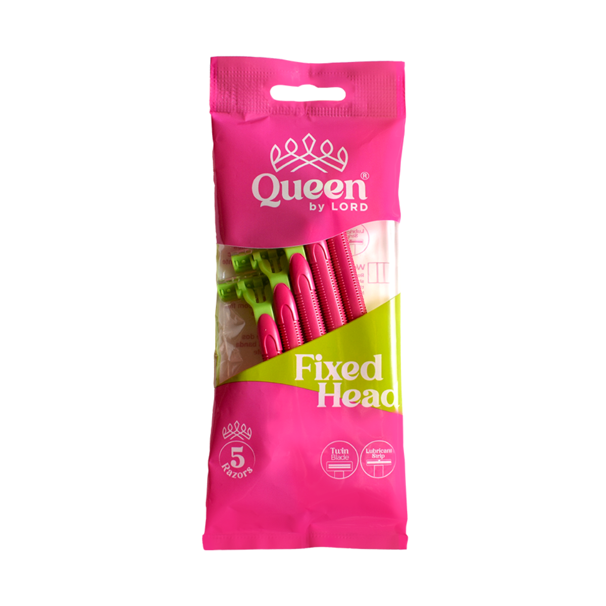 - “Queen” For Women 5 Disposable Razors Twin Blade plus Lubrastrip Rubber Handle Fixed Head